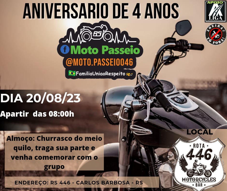 DIA 20/08/2023 - ANIVERSÁRIO DE 4 ANOS ROTA 446 MOTORCYCLES BAR - CARLOS BARBOSA - RS
