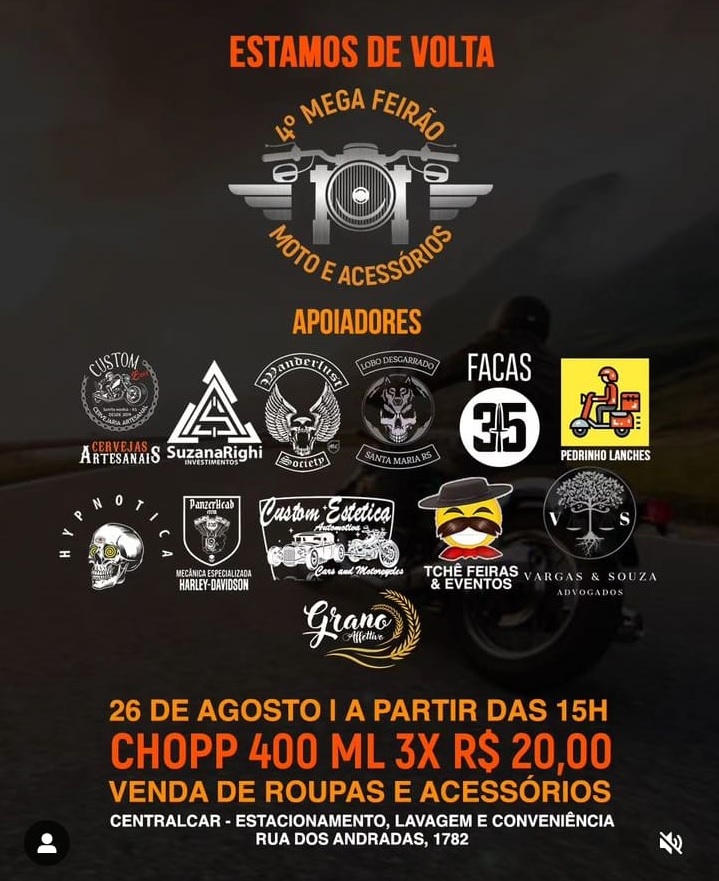 DIA 26/08/2023 - 4° MEGA FEIRÃO MOTO E ACESSÓRIOS - SANTA MARIA - RS