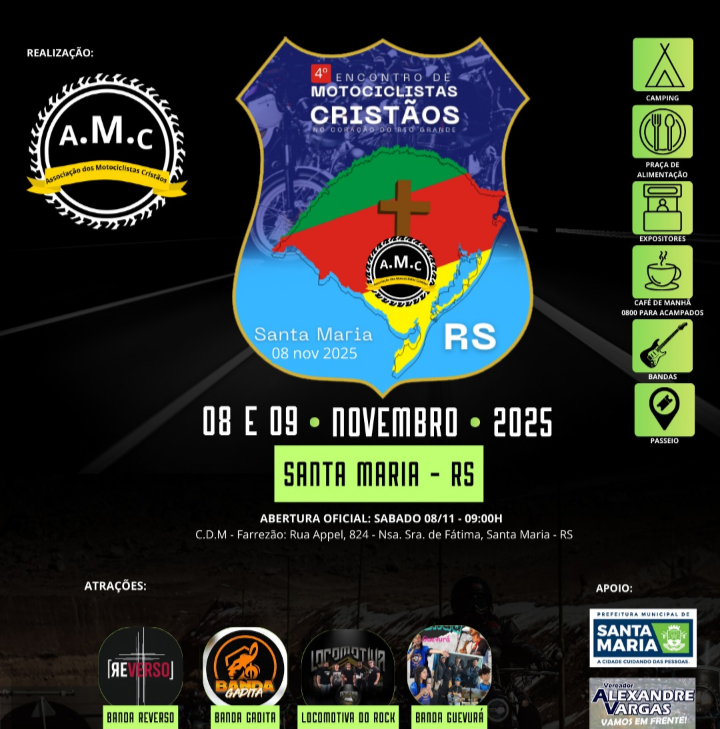 DIA 08/11/2025 - 4° ENCONTRO DE MOTOCICLISTAS CRISTÃOS - SANTA MARIA - RS