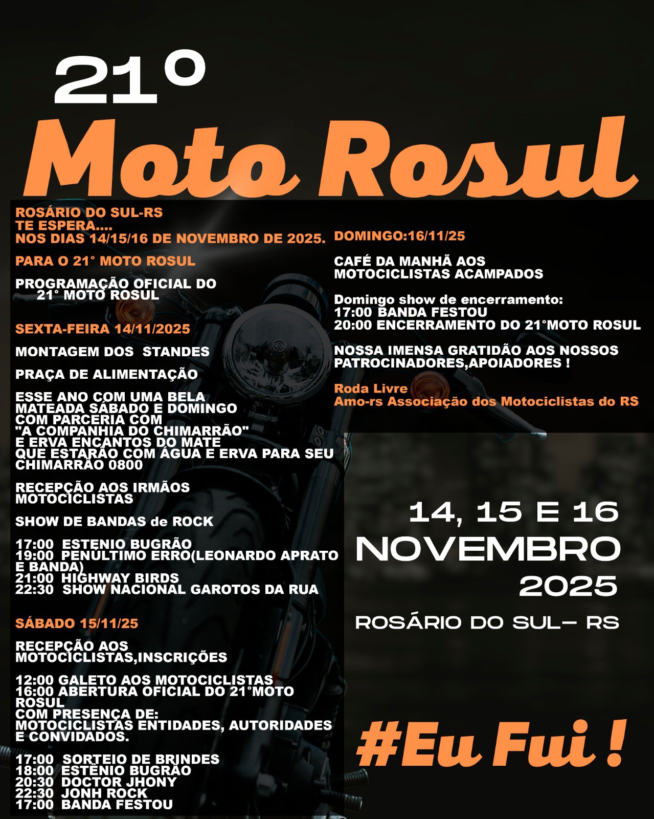 DE 14 A 16/11/2025 - 21° MOTO ROSUL - ROSÁRIO DO SUL - RS