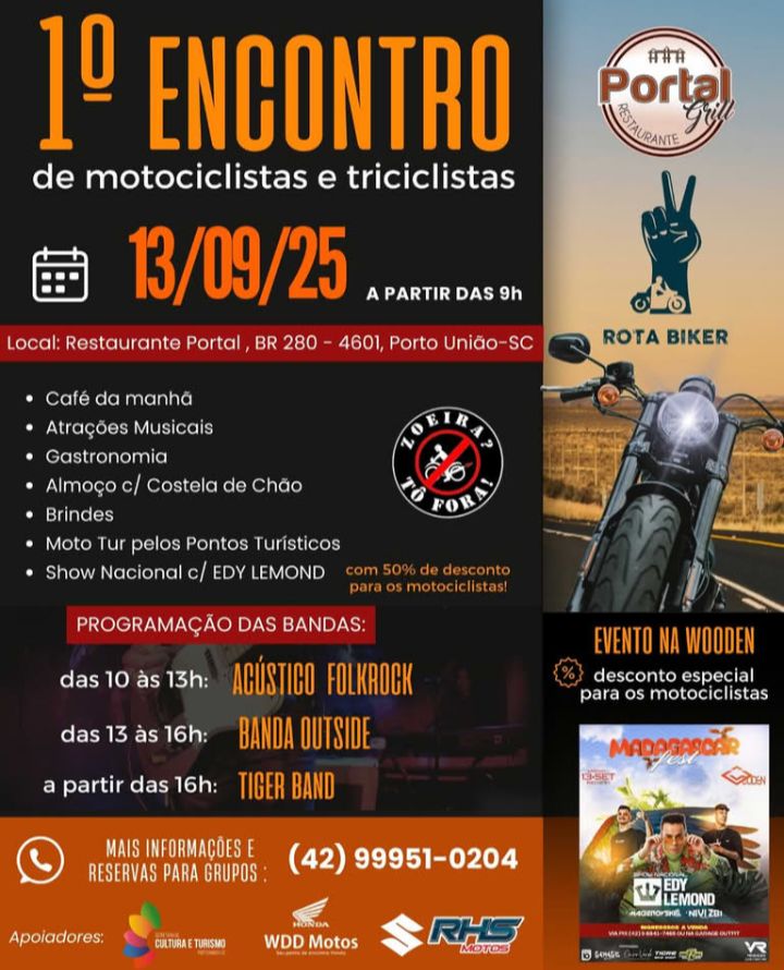 DIA 13/09/2025 - 1° ENCONTRO DE MOTOCICLISTAS E TRICICLISTAS - PORTO UNIÃO - SC
