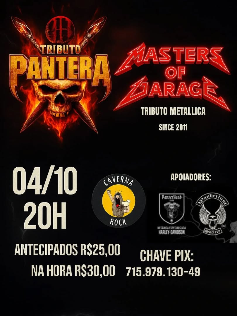 DIA 04/10/2025 - TRIBUTO PANTERA & METALLICA- CAVERNA ROCK - SANTA MARIA - RS