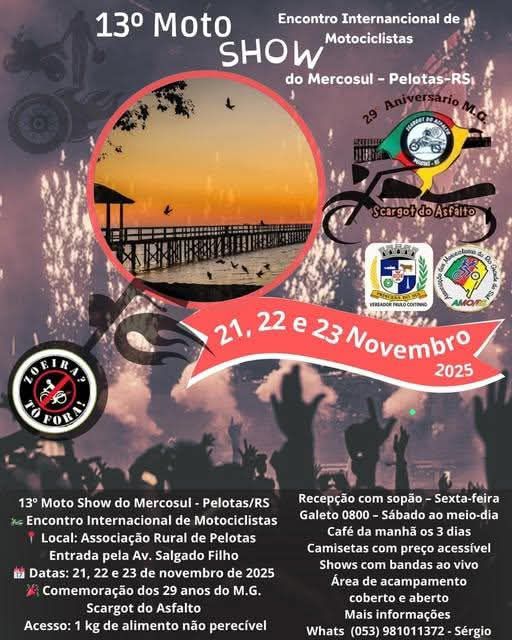 DE 21 A 23/11/2025 - 13° MOTO SHOW DO MERCOSUL - PELOTAS - RS