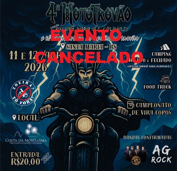 EVENTO CANCELADO - DE 11 A 12/04/2026 - 4° MOTO TROVÃO - SANTA MARIA - RS