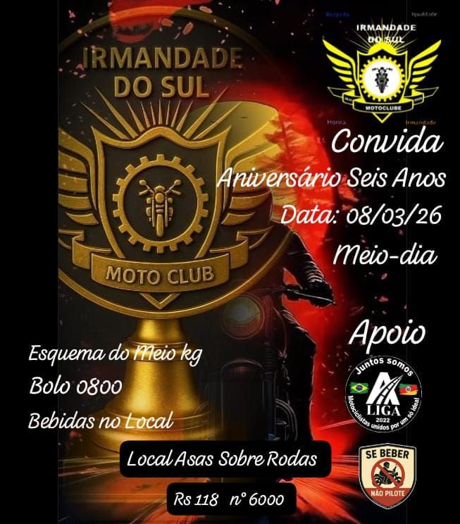 DIA 08/03/2026 - 6° ANIVERSÁRIO MC IRMANDADE DO SUL MC - VIAMÃO - RS