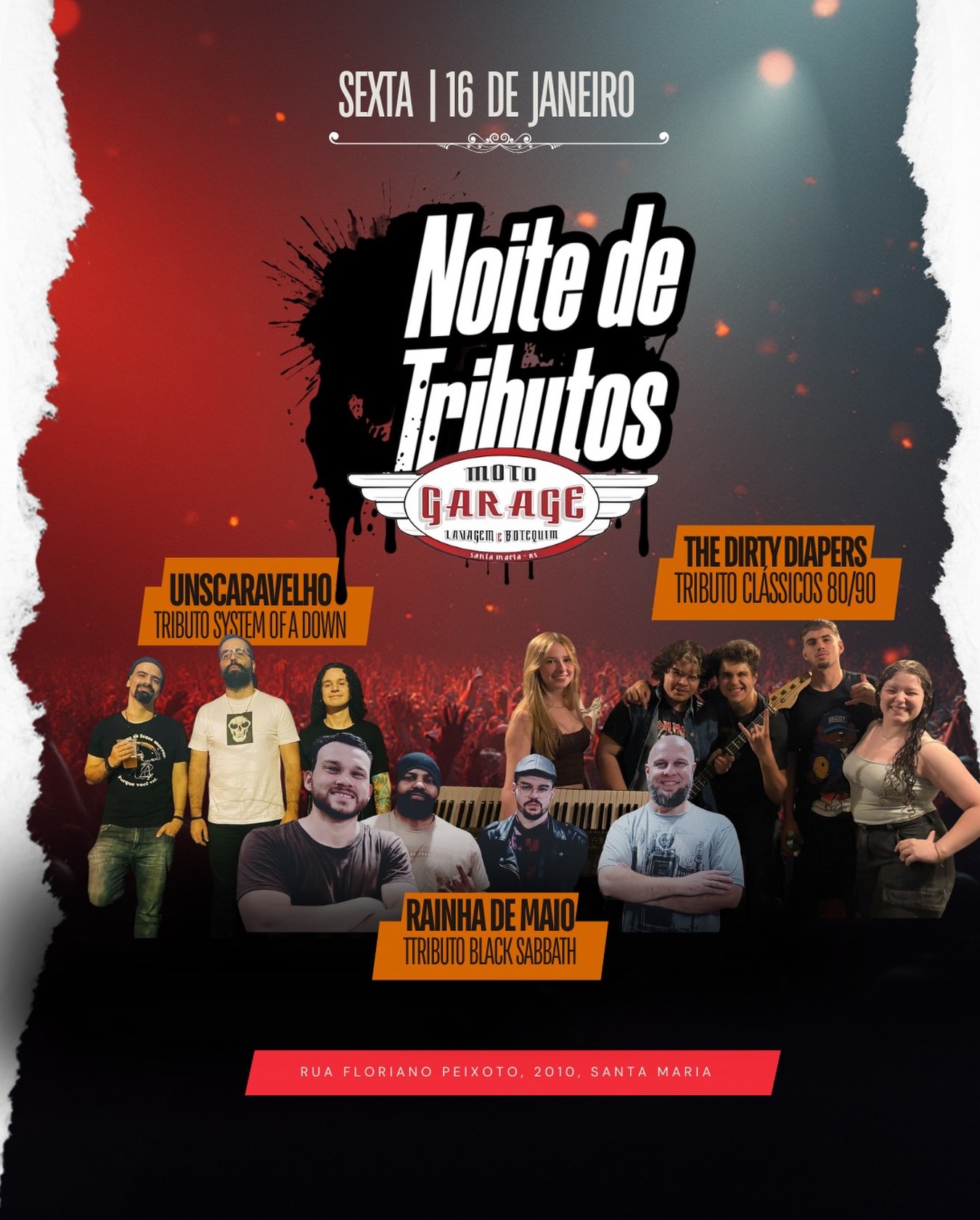 DIA 16/01/2026 - NOITE DOS TRIBUTOS - MOTO GARAGE - SANTA MARIA- RS