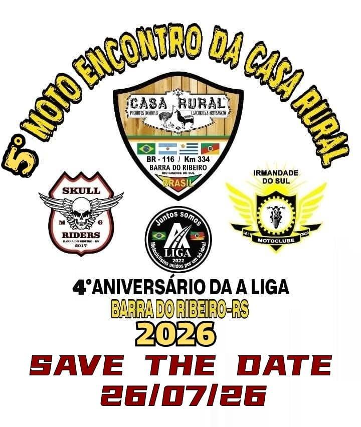 DIA 27/07/2026 - 5° MOTO ENCONTRO DA CASA RURAL - BARRA DO RIBEIRO - RS