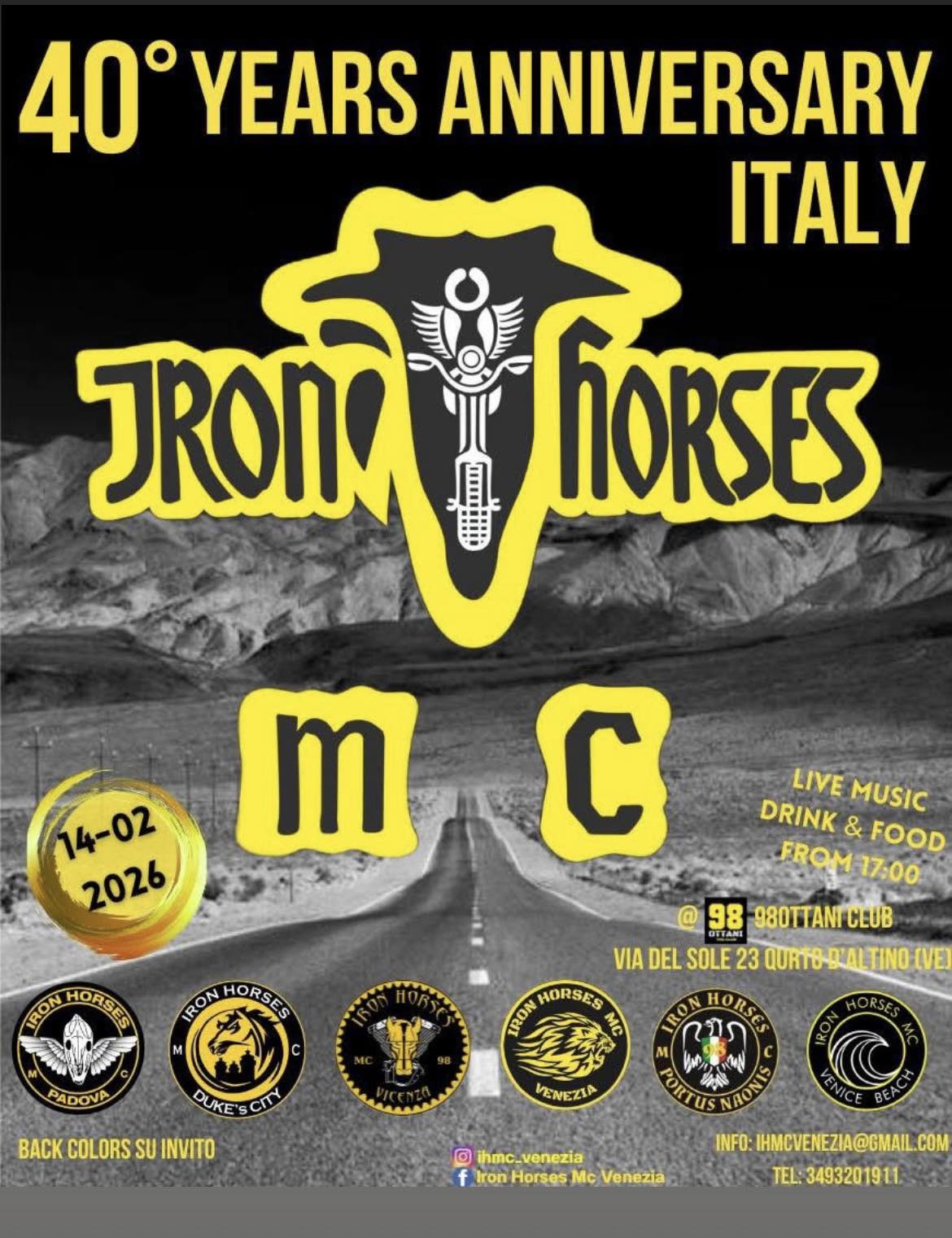 DIA 14/02/2026 - 40° YEARS ANNIVERSARY MC IRON HORSES - FIRENZE - ITALY
