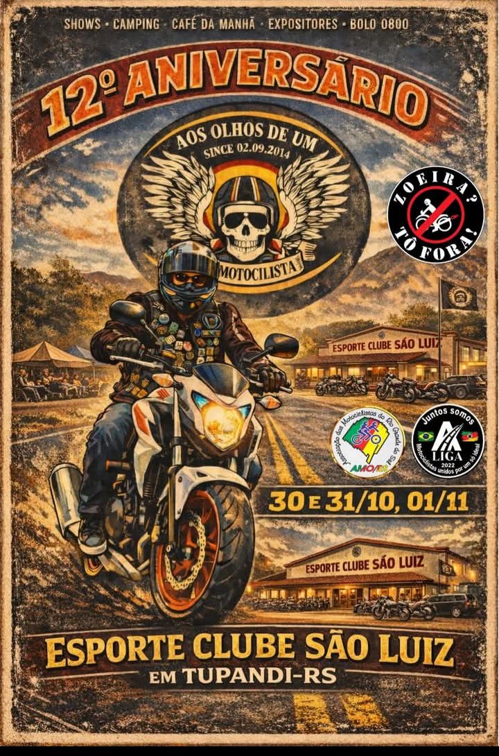 DE 30/10 A 01/11/2026 - 12° ANIVERSÁRIO AOS OLHOS DE UM - TUPANDI - RS