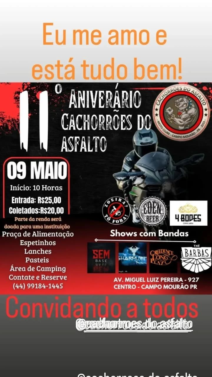 DIA 09/05/2026 - 11° ANIVERSÁRIO MC CACHORRÕES DO ASFALTO - CAMPO MOURÃO - PR