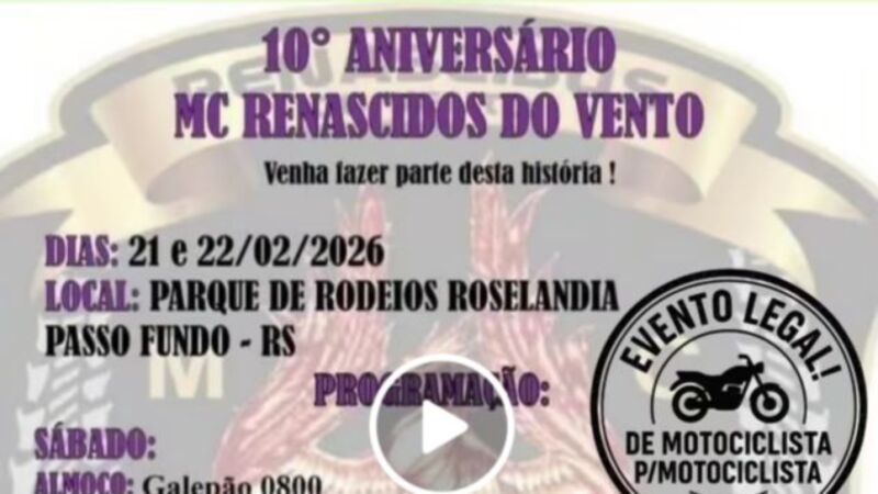 DE 21 A 22/02/2026 - 10° ANIVERSÁRIO MC RENASCIDOS DO VENTO - PASSO...
