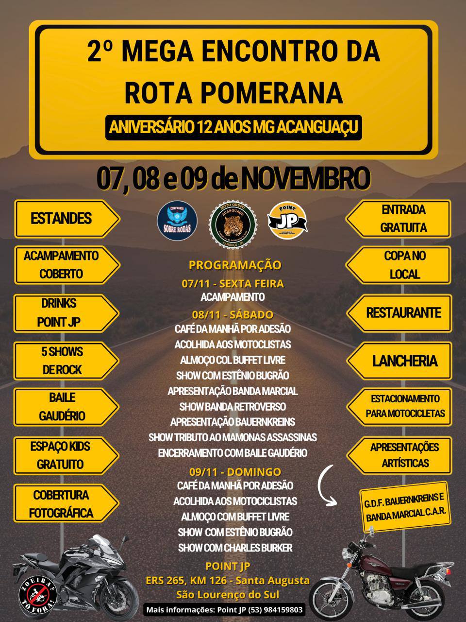 DE 07 A 09/11/2025 - 2° MEGA ENCONTRO DA ROTA POMERANA - SÃO LOURENÇO DO SUL - RS