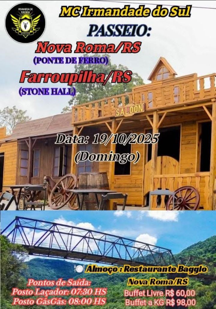 DIA 19/10/2025 - PASSEIO MC IRMANDADE DO SUL - NOVA ROMA DO SUL - RS