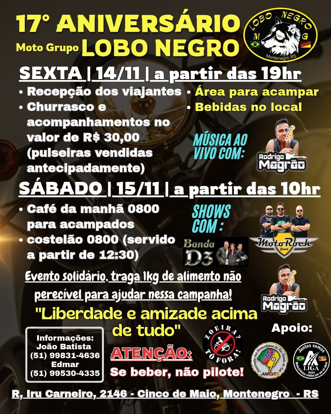 DIA 14/11/2025 - 17° ANIVERSÁRIO MG LOBO NEGRO - MONTENEGRO - RS