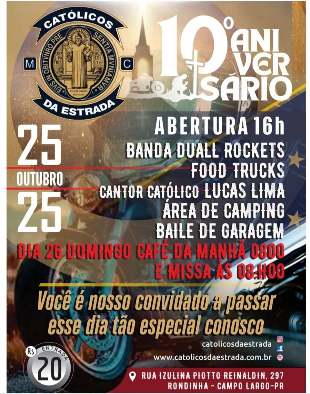 DE 25 A 26/10/2025 - 10° ANIVERSÁRIO MC CATÓLICOS DA ESTRADA - CAMPO LARGO - PR