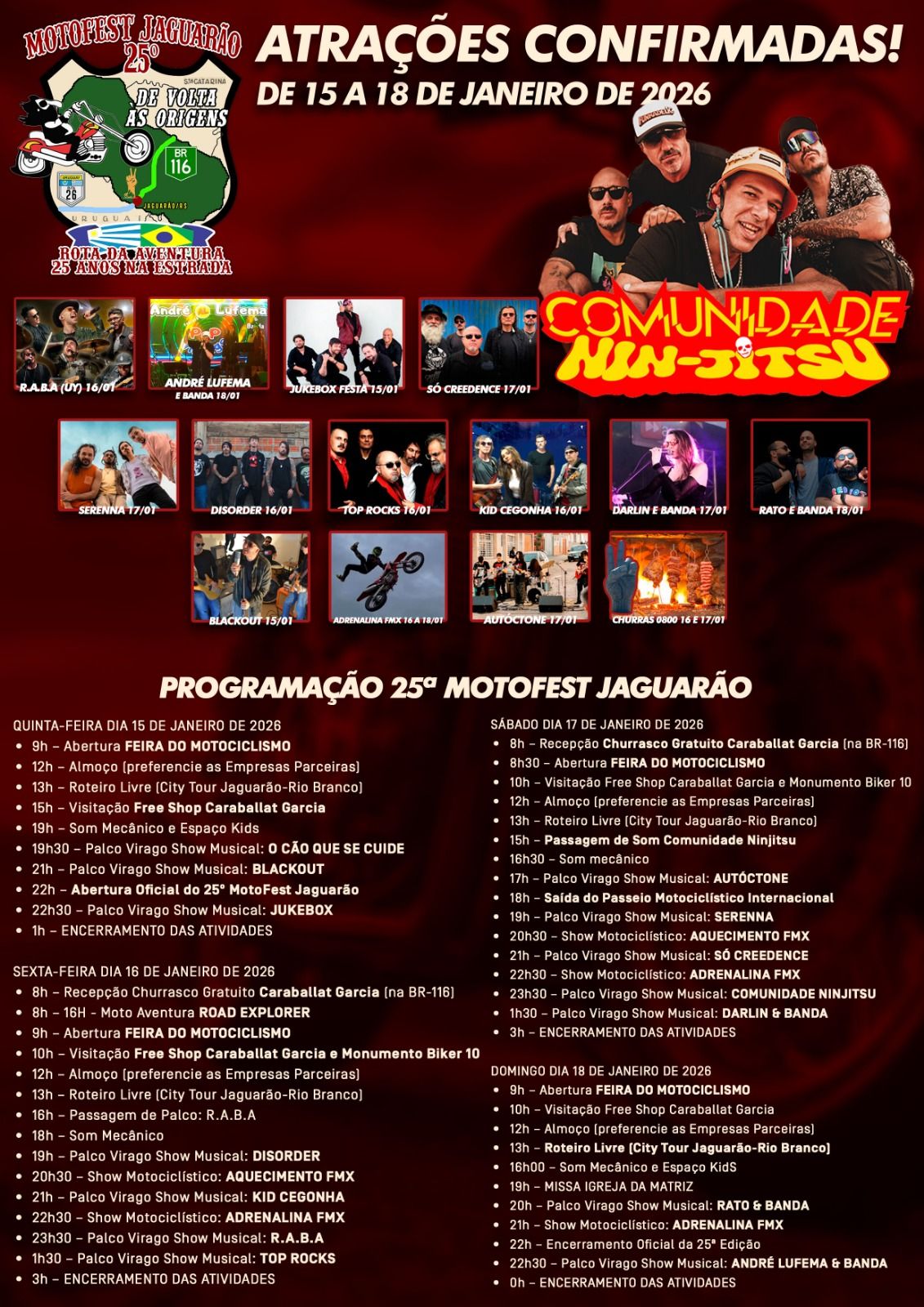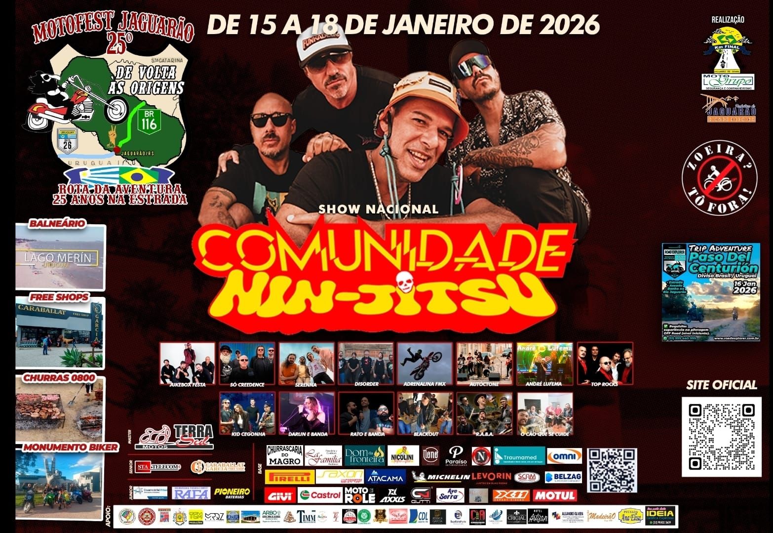 DE 15 A 18/01/2026 - 25° MOTOFEST - ROTA DA AVENTURA - JAGUARÃO - RS