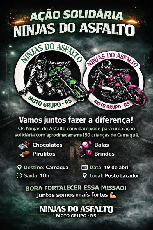 DIA 19/04/2026 - AÇÃO SOCIAL MG NINJAS DO ASFALTO - CAMAQUÁ - RS