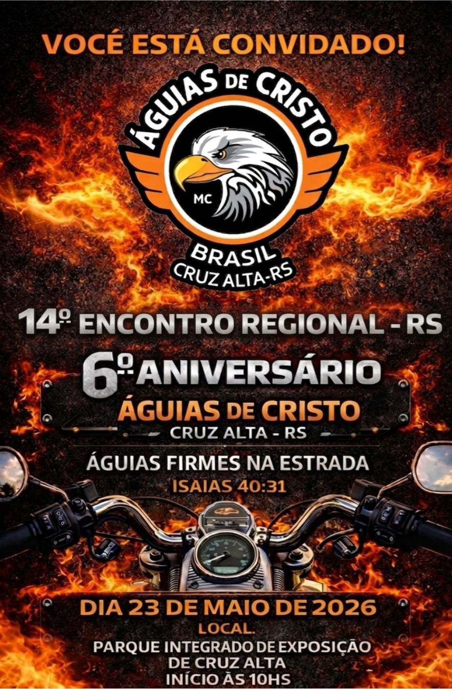 DIA 23/05/2026 - 6° ANIVERSÁRIO DO MC ÁGUIAS DE CRISTO - CRUZ ALTA - RS